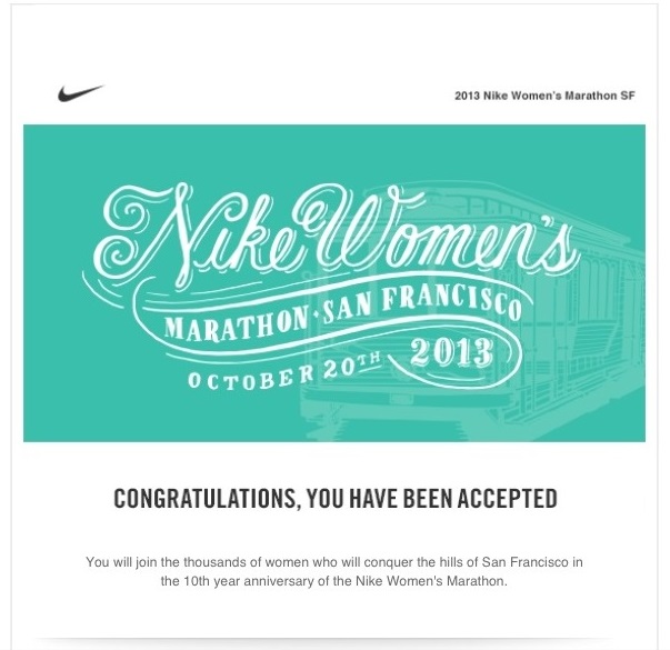 Last Friday felt like Christmas morning with tens of thousands of us waiting in anticipation for the results of the 2013 Nike Women’s Marathon San Francisco random lottery draw.