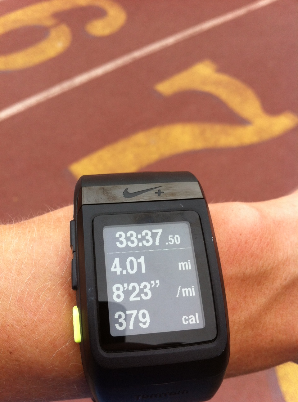 Thursday’s track workout was a little chilly, but successful. My goal pace was 7:40-7:45 for each of the three miles, and somehow I managed to clock each one at 7:39, which means I’m getting a good feel for overall pacing.