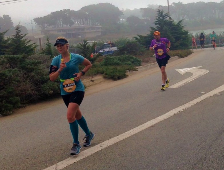 Miles 16-18: Mile 16 was a mental turning point; we left Golden Gate park and turned onto the Great Highway. A “mere” 10 more miles to go, and it was just an out-and-back down to Lake Merced, so I dug in. The weather was foggy and cool – perfect – and I was keeping a consistent pace despite the growing stiffness in my legs.