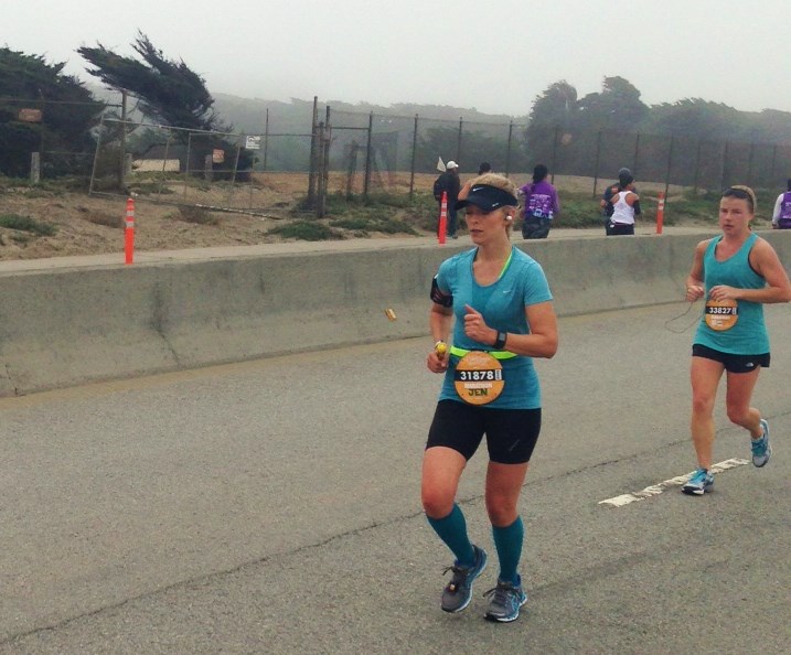 It was a good choice, because around mile 5.5 we hit this long stretch of hill into the Presidio. It wasn’t horribly difficult, most likely because I’ve been training around here and am used to the hills…but it’s definitely tough on the legs when you’ve got 20 more miles or so to log.