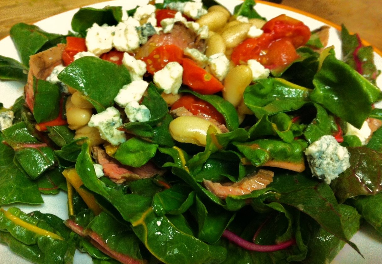 Grilled Steak and Rainbow Chard Salad with White Beans (serves 4)