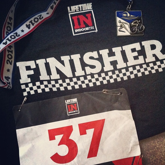 Things got real this week an impromptu Lifetime indoor triathlon that my friend Colleen and I did while while I was visiting family at home in Michigan. We signed up for the time-based event (10-min. swim/30-min. bike/20-min. run)  on a bit of a whim because the theme was, “Inspiration Without Intimidation,” so it seemed like the perfect way to ease into racing season.