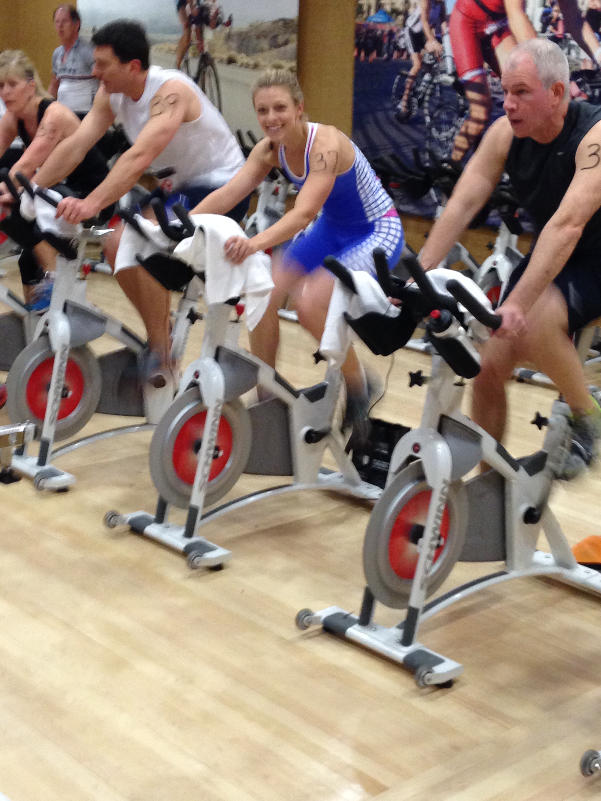 I did make up for it on the bike because we were allowed to keep a low resistance while spinning, so I tried to maintain a quick cadence and a speed in the 46-50 mph range. After a half hour, I hit 23.9 miles, and even got a kudos from my lane partner from the pool because we were pacing off each other for most of the ride.