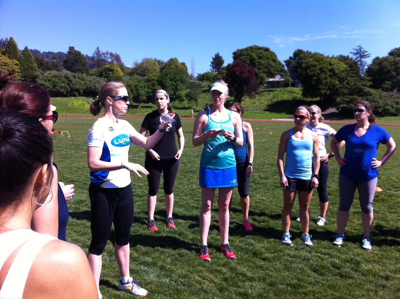 I stopped by for yesterday afternoon’s sessions — first up on agenda was a run clinic in which Castro coached captains on how to lead track workouts for their respective teams. We divided into groups and broke the session into segments with each group in charge of a specific aspect of the workout.