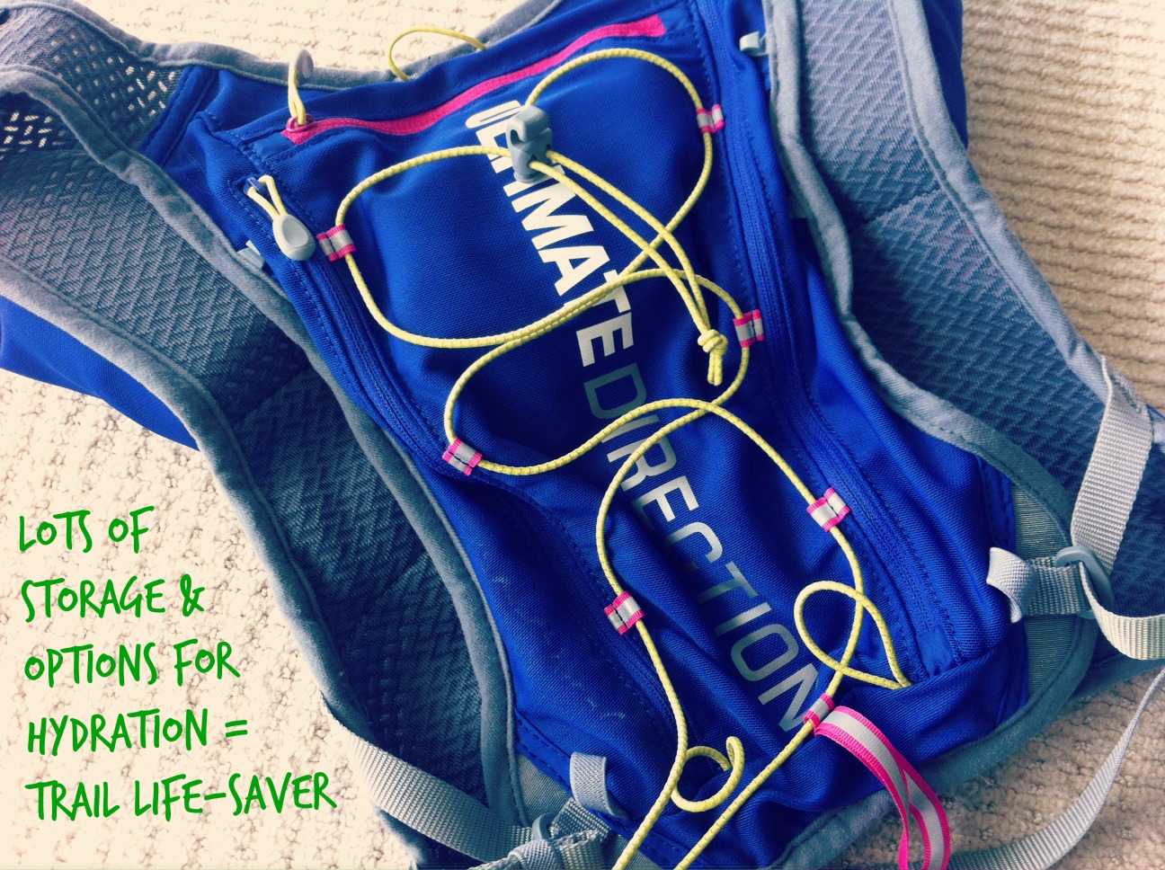 Focus on fit and function; you want something that’s comfortable, compact and efficient so you have everything you need without extra bulk. My favorite is the 2013 Trail Runner Magazine Gear of the Year Award-winning Ultimate Direction Jenny Women’s Ultra Vesta, which is made specifically for women with an adjustable fit.