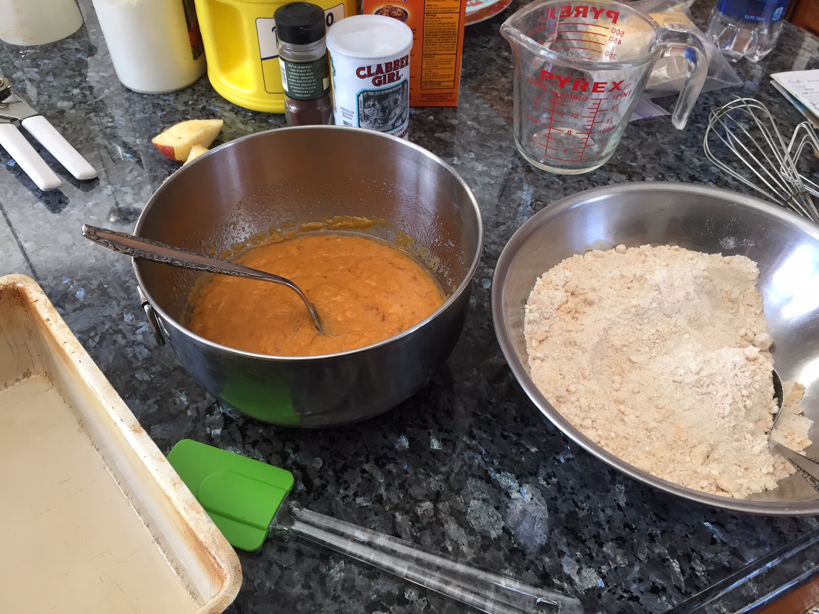 4. Slowly incorporate dry mixture into wet mixture in large bowl.
