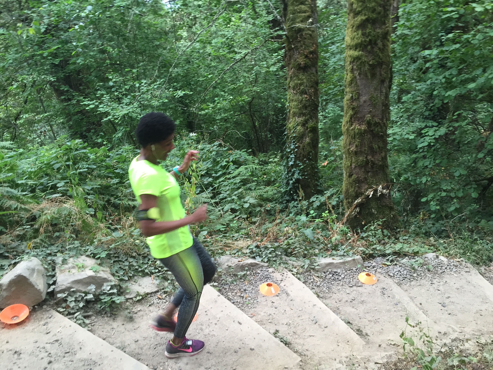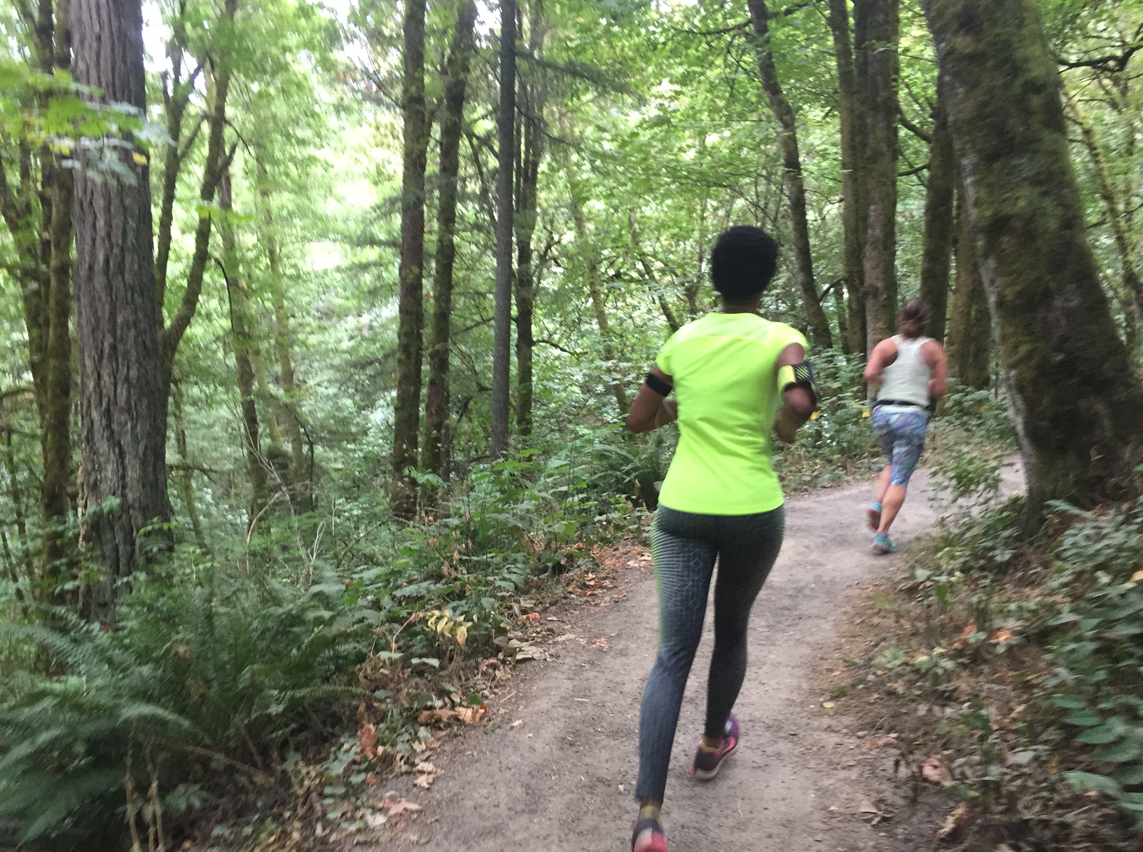 We kept a solid pace through a number of rolling hills before hitting a pretty long uphill, which I think it was the Holman and 53rd section. After taking the first part at a jog, we rounded a corner and saw it keep going up, up, and away…so Syreeta made what I thought was a great judgment call and started hiking up.
