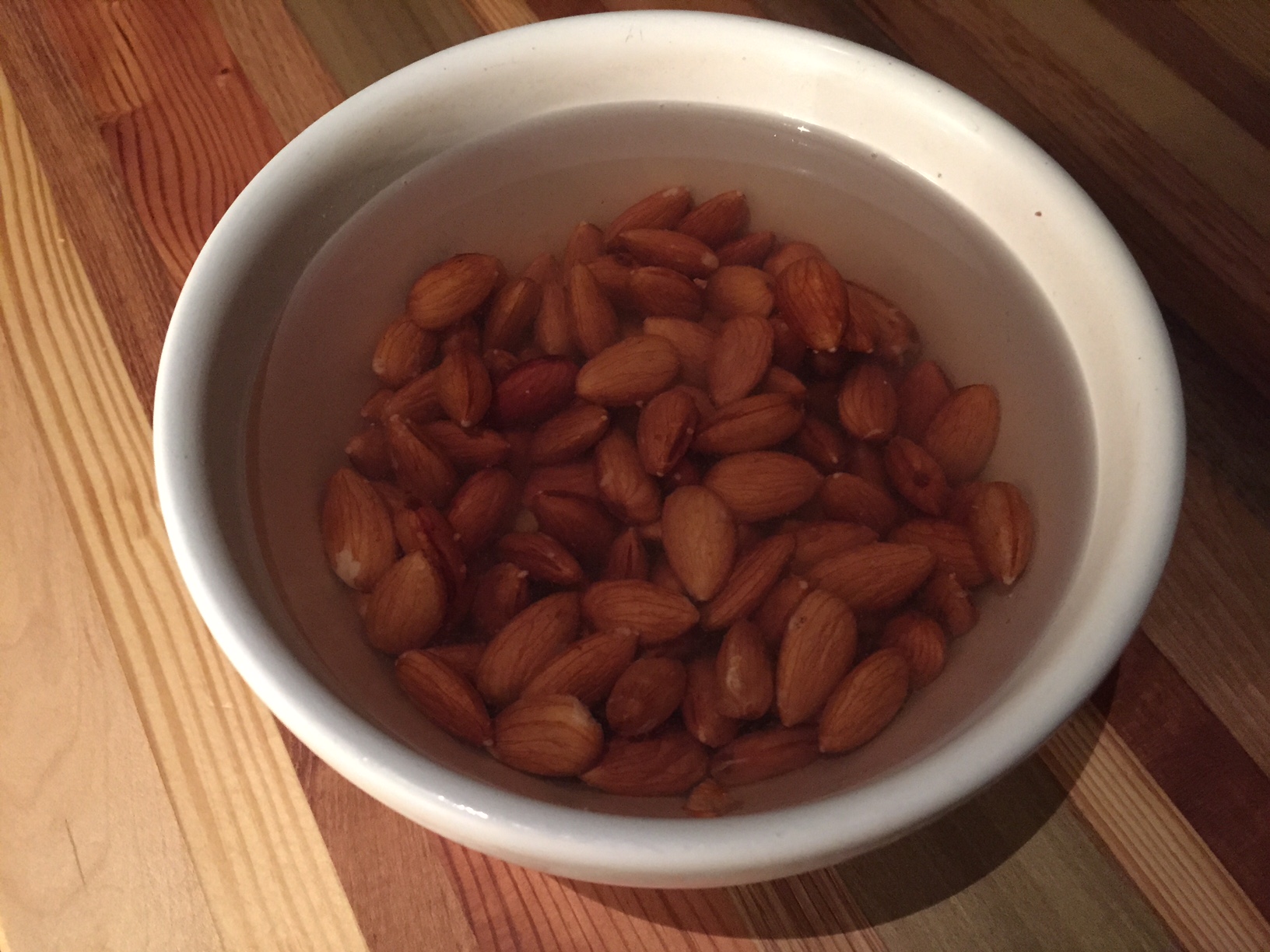 Step two: Soak almonds. Overnight, ideally, but for at least a few hours or until the nuts plump up.