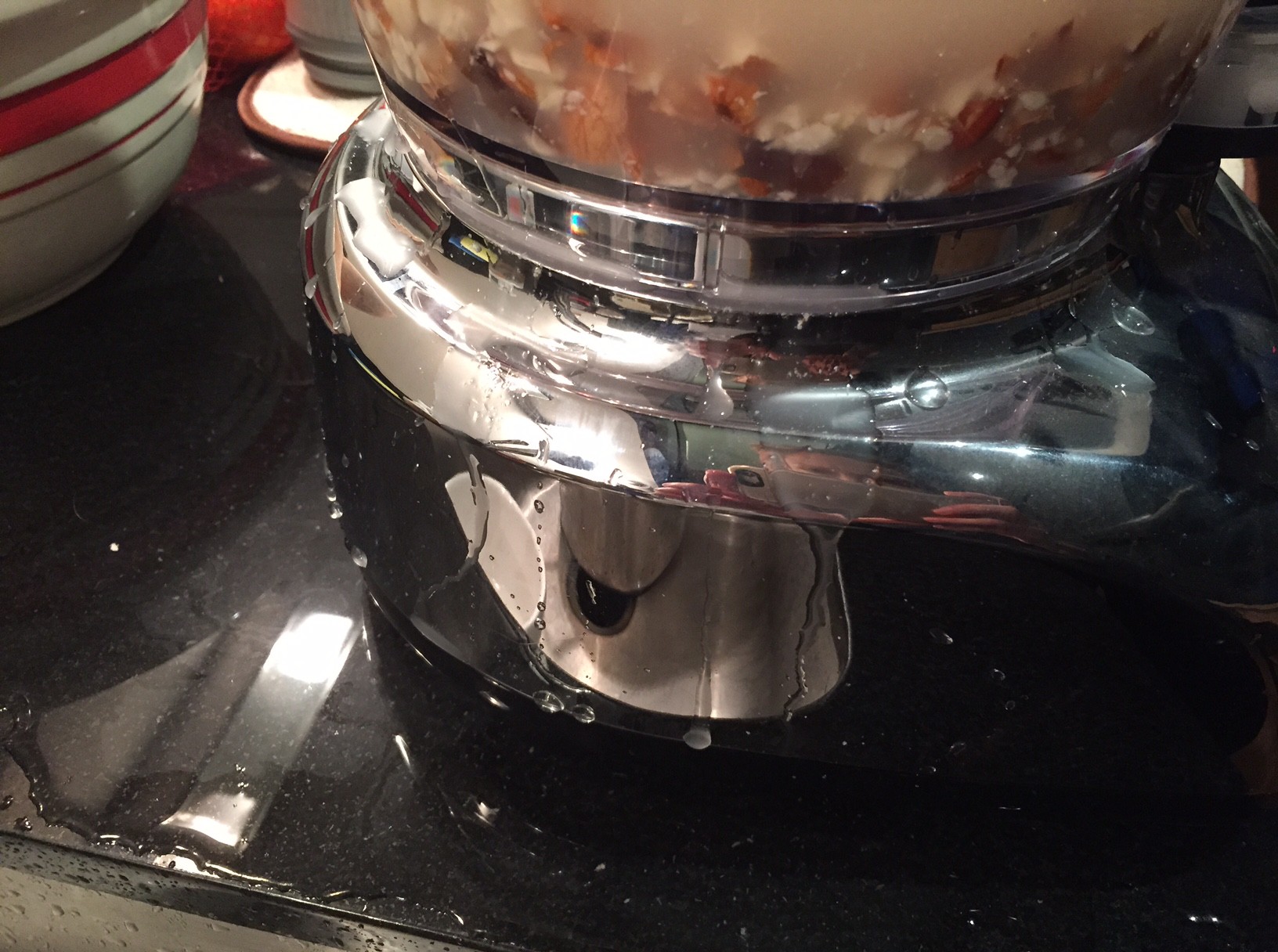 Step four: Clean up explosion of water from said food processor. Locate manual and read instructions about not filling above “fill line.” Oops.