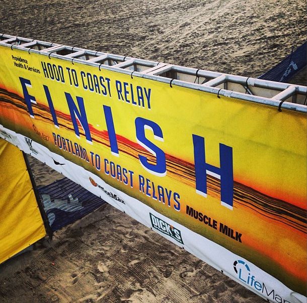 Once Janelle was off and running, the rest of us piled into the van to meet her and the rest of the team at the finish. And I’m not gonna lie — seeing this as we (finally!) drove into Seaside gave us all chills.