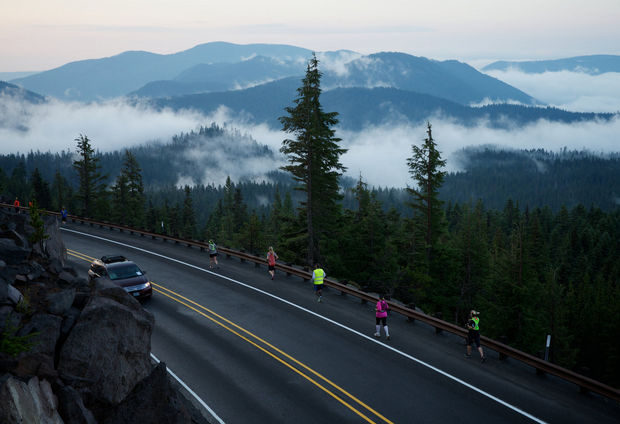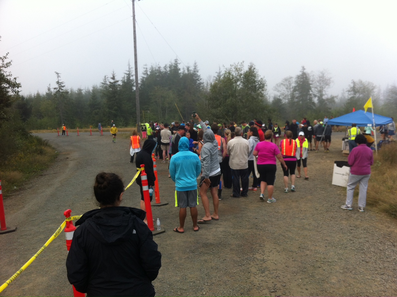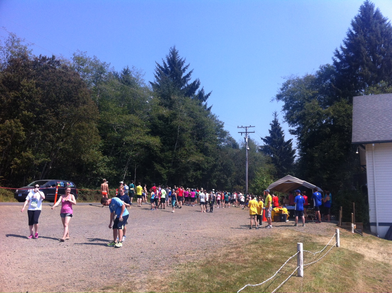 After running along Highway 26 for some time, I entered the city of Sandy, Ore., and it was just a few more turns through town and onto some side streets before I slapped the bracelet on Mindy’s wrist and she officially kicked things off for Van 2. Here I am, following her out of the exchange area to meet up with the rest of the team and hop into Van 2, my home base for the rest of the race.