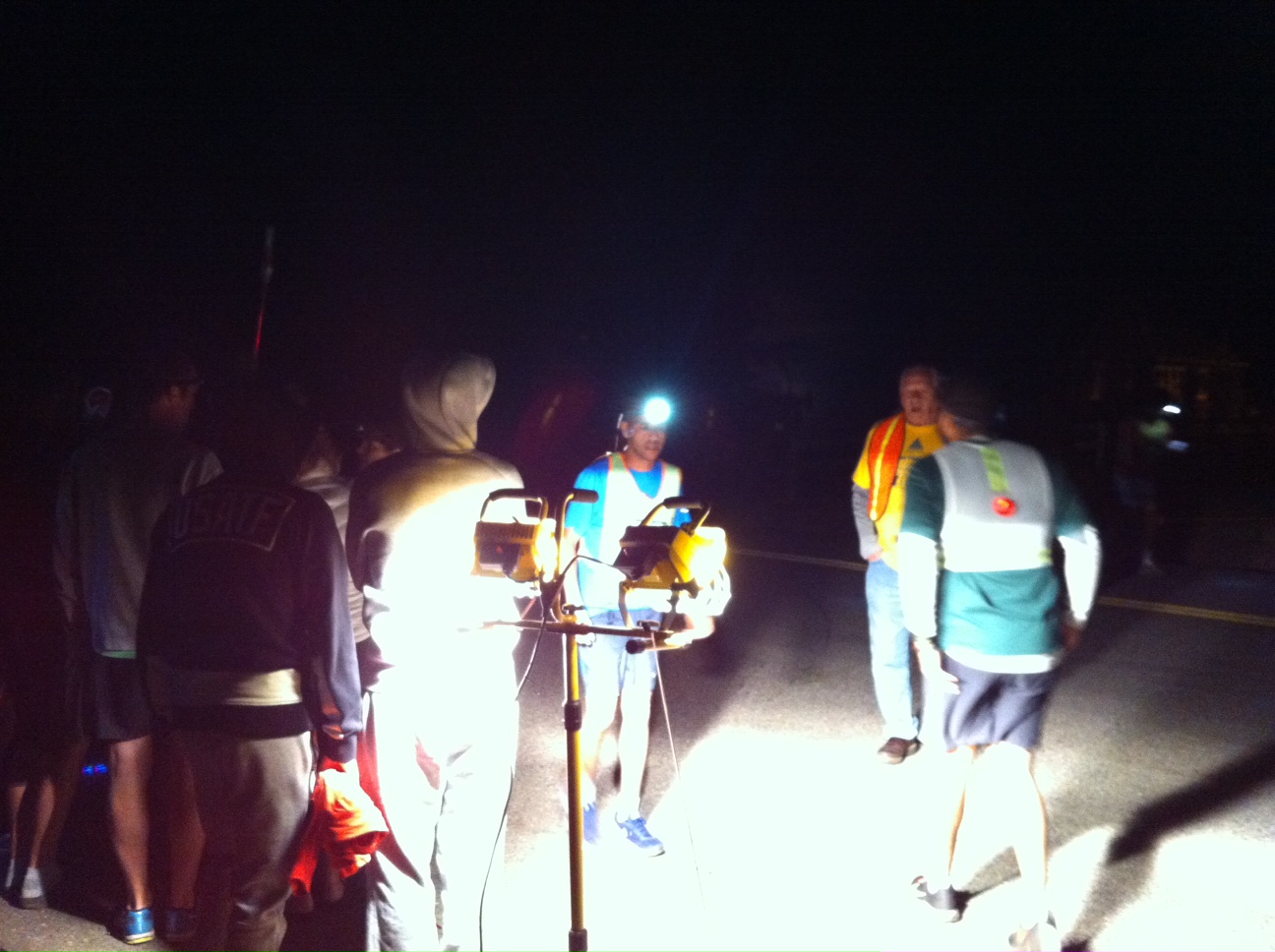 I awoke at 2:06 am to the sound of my teammates getting dressed and ready to go, so I gathered my things (helpful hint: sleep in the clothing for your next run!) and we packed up the van and were on the road again by 2:30. We anticipated it’d take us about an hour to get to the next exchange, and we also wanted to allow a few extra minutes even though we projected them to finish their section at about 4 am the earliest.