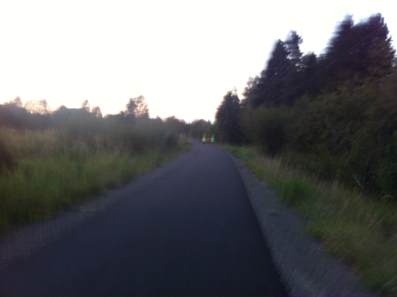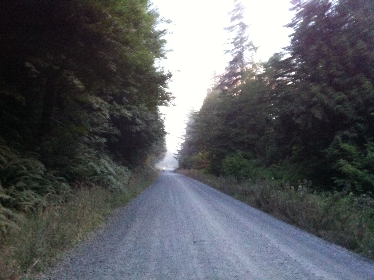 Van 1 was looking strong as we did the hand-off, and I had two runners to cheer on before lining up at my own exchange for my third run of the race, leg 21. Because it was on a pretty desolate (read: quiet and remote) stretch of gravel road, I was crossing my fingers that I’d have some sunlight to help guide me. And, thankfully, the first slivers of light came just as I lined up to get the bracelet from Jen again.