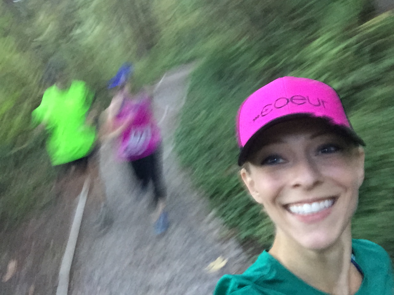 Ashly’s hubby Sean met up with us with about a mile and a half to go, and his extra encouragement gave her just the boost she needed to bring it in strong to the finish. I tried to capture a shot of us in action; I’ll attribute the blurriness to our blazingly-flast pace back down Wild Cherry 😉