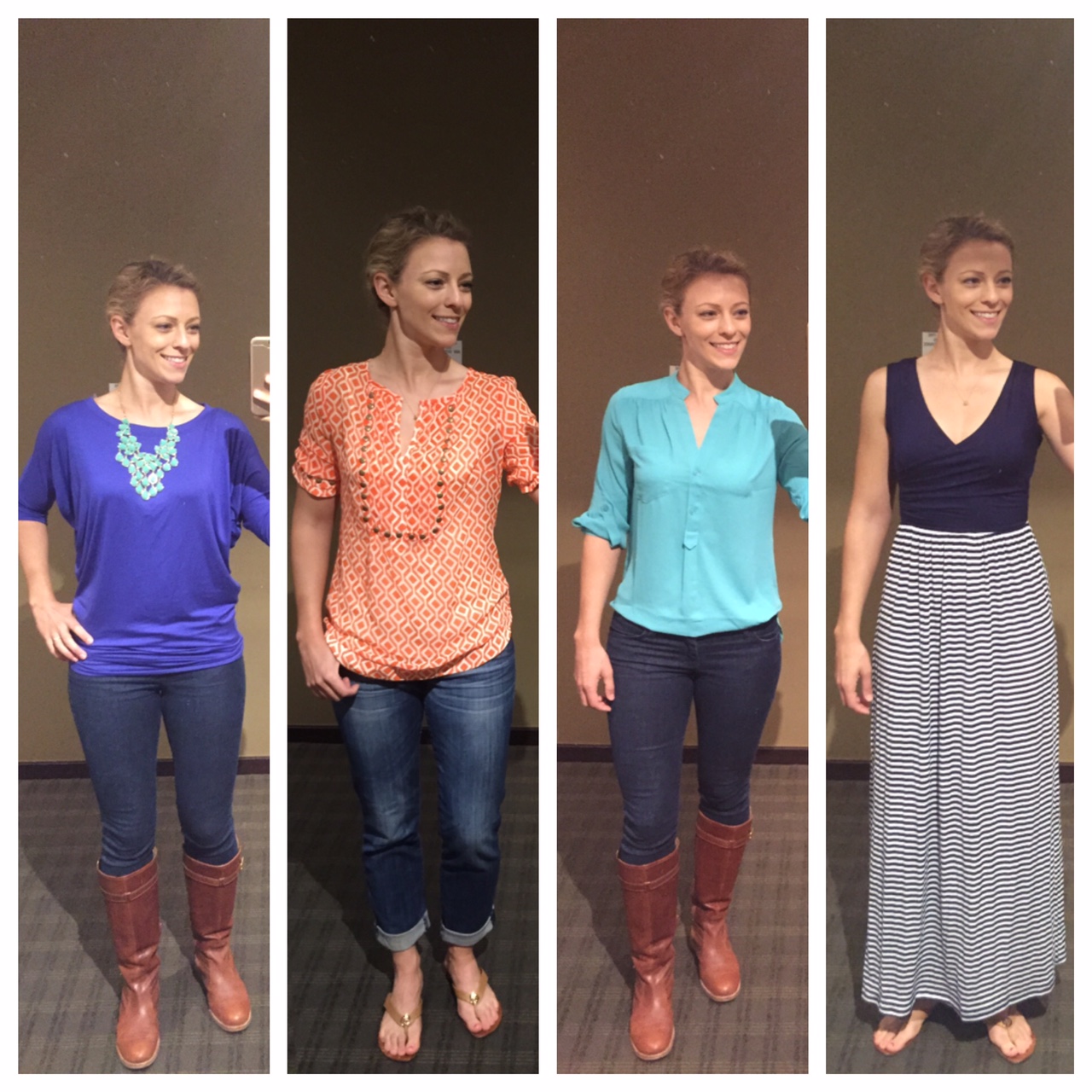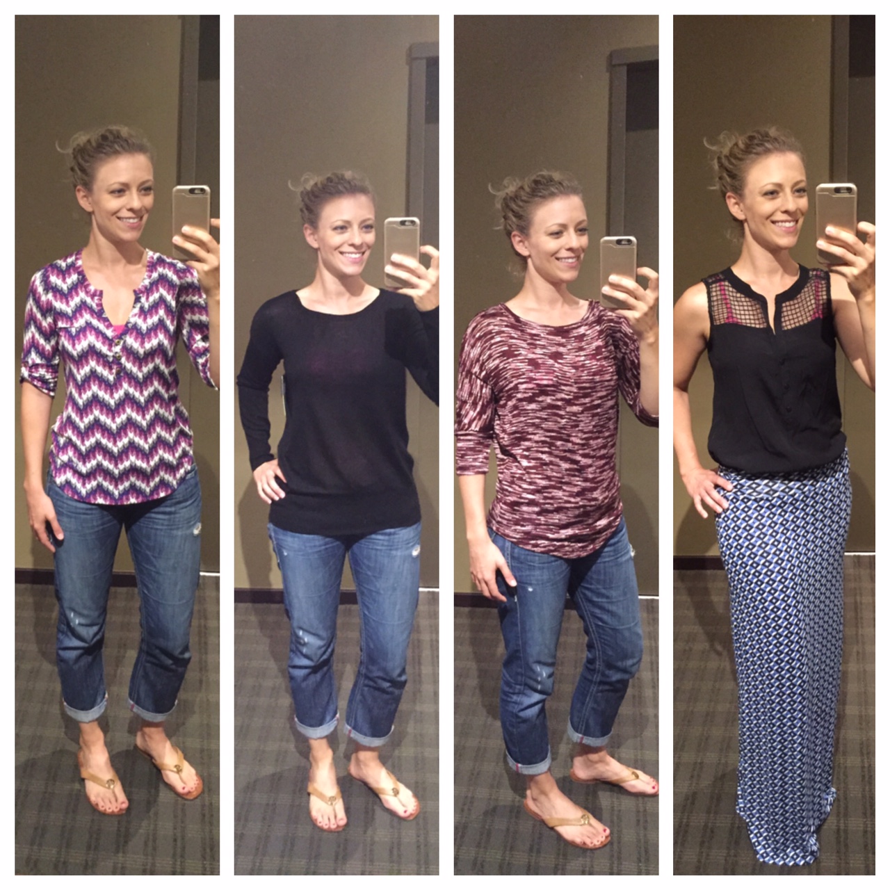 For my eighth fix, I warned my stylist that I’d be 20 weeks pregnant, so we’d be starting to venture into Belly Territory. Between one pair of inset panel and two pairs of full-panel jeans, plus a few belly bands, I told her I was set with bottoms.