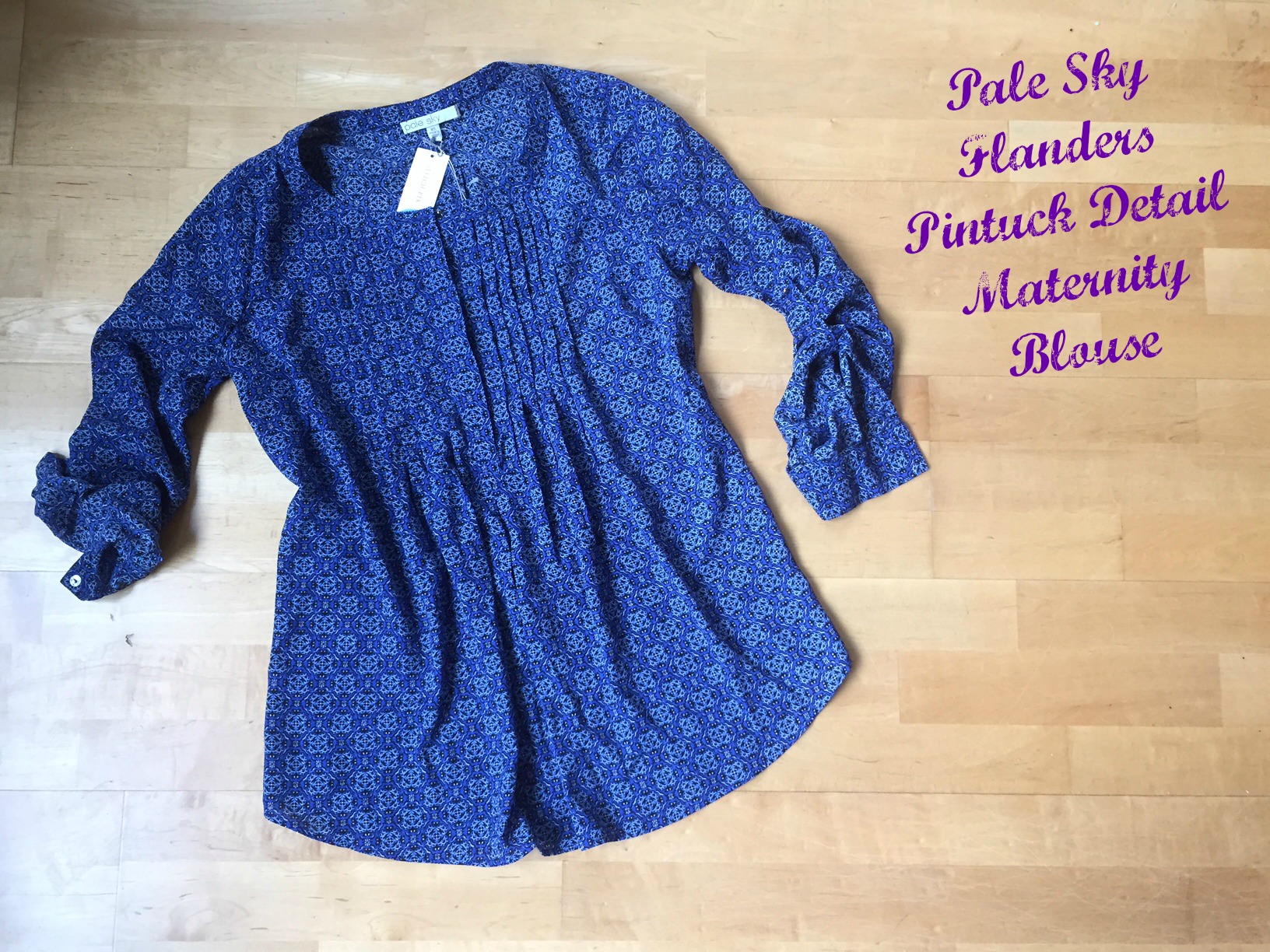 Next was the Pale Sky Flanders Pintuck Detail Maternity Blouse ($68). Right off the bat, I wasn’t crazy about the pattern, but I have several similar blouses that I wear quite often, so I figured it was worth a shot.