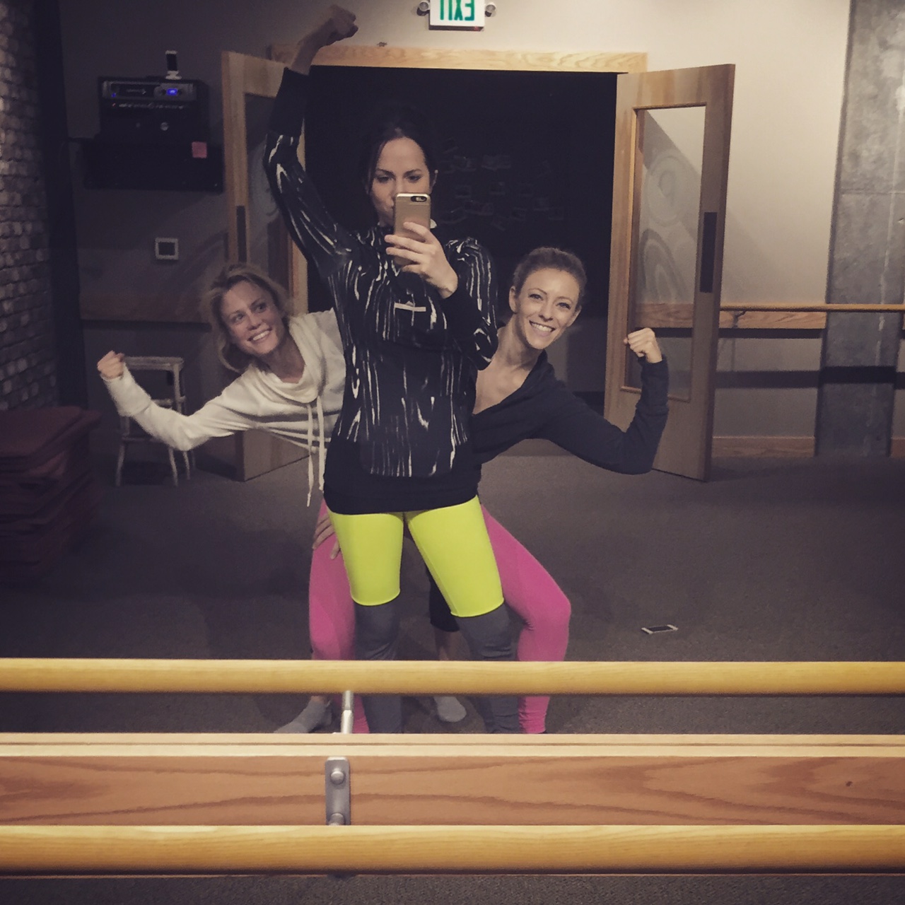 This was no walk-in-the-park prenatal class by any means, though. Both Tiffany and I were laughing as we found ourselves doused in sweat and grunting as we felt the burn of the isometric holds and floundered our way through the stability work while trying to navigate our now-changing centers of balance.
