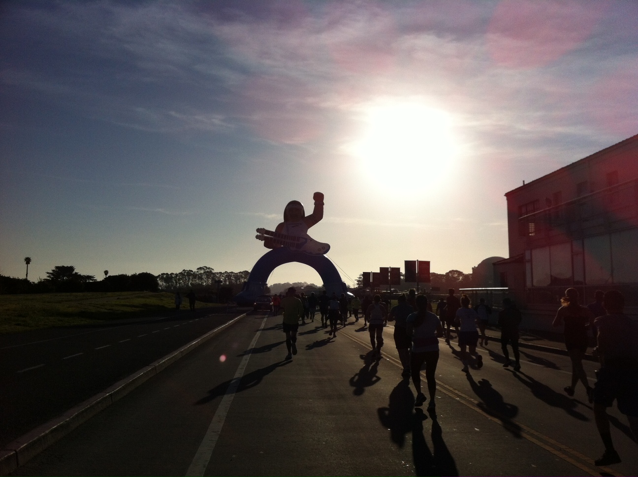 In fact, it became a bit of a joke after the first few times — I’d pass and tag him, then he’d return the favor. On and on it went, and I think that camaraderie actually helped both of us stay in the race toward the end. Those rolling hills sure got a lot tougher on the way back in, and by that time my stomach started to feel a little wonky.