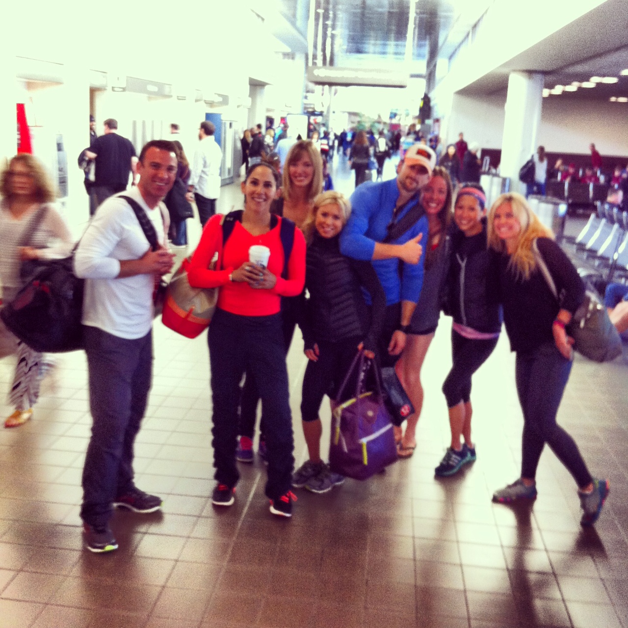 Don’t let those grins fool you — we were happy, but certainly hurting, after a double dose of Barry’s. In fact, after a ride back to the airport and a quick dinner together, most of us looked like this on the plan ride home: Exhausted!