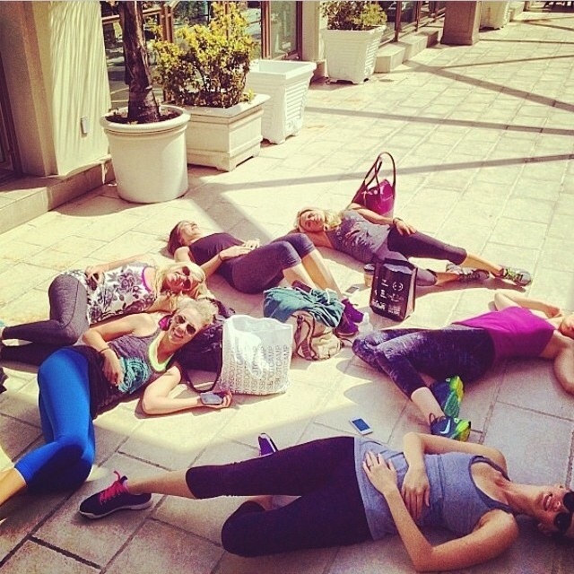 We swapped places twice more for a total of three different treadmill segments and three floor sessions each, and before we knew it the class was coming to an end. We did a quick cooldown stretch and promptly collapsed outside in the sun for a few moments to recover and figure out how we were going to make it through another hour of this kind of intensity later in the afternoon.